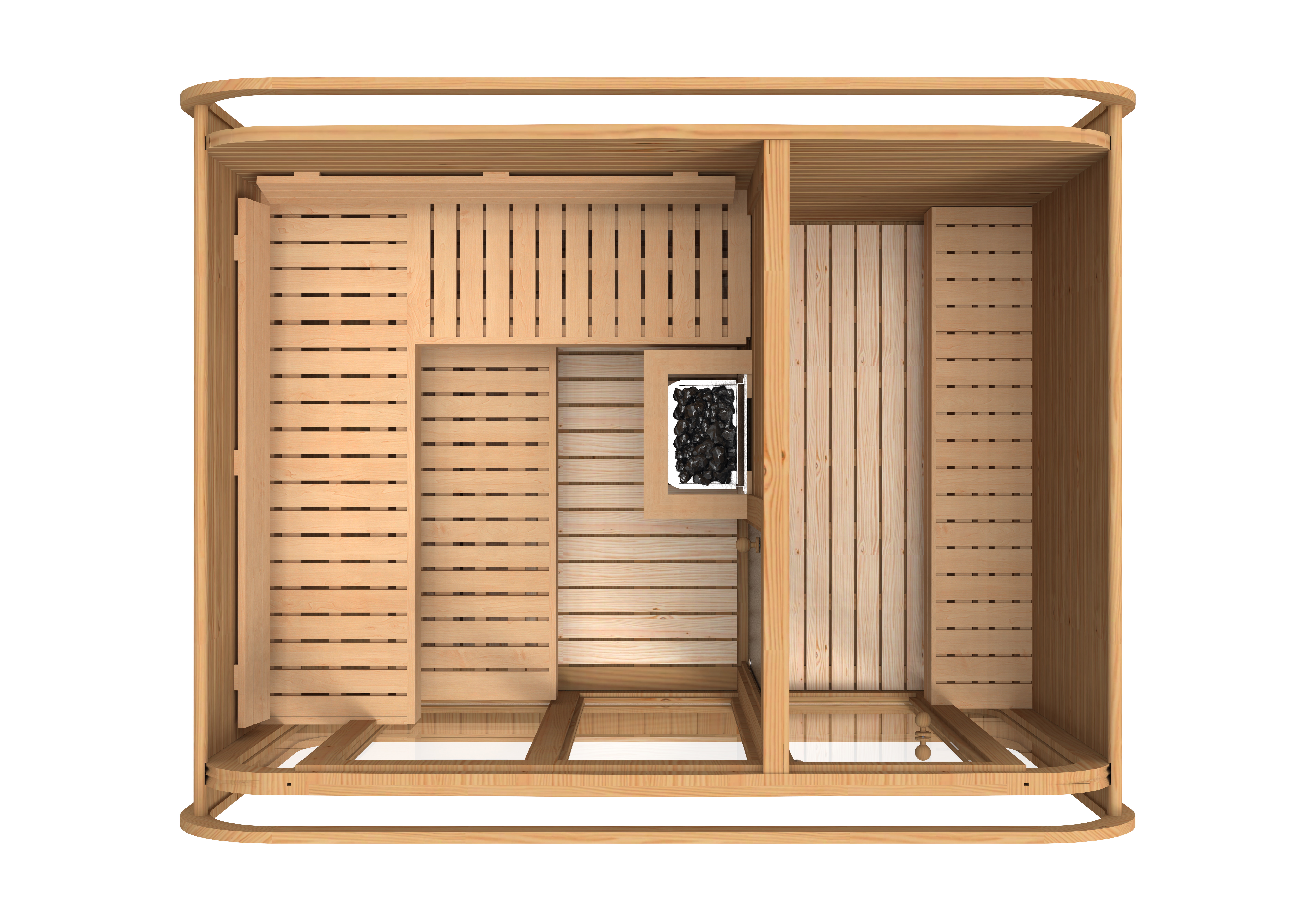 In der Sauna haben Sie genügend Platz, um mit bis zu 6 Personen gleichzeitig zu saunieren.