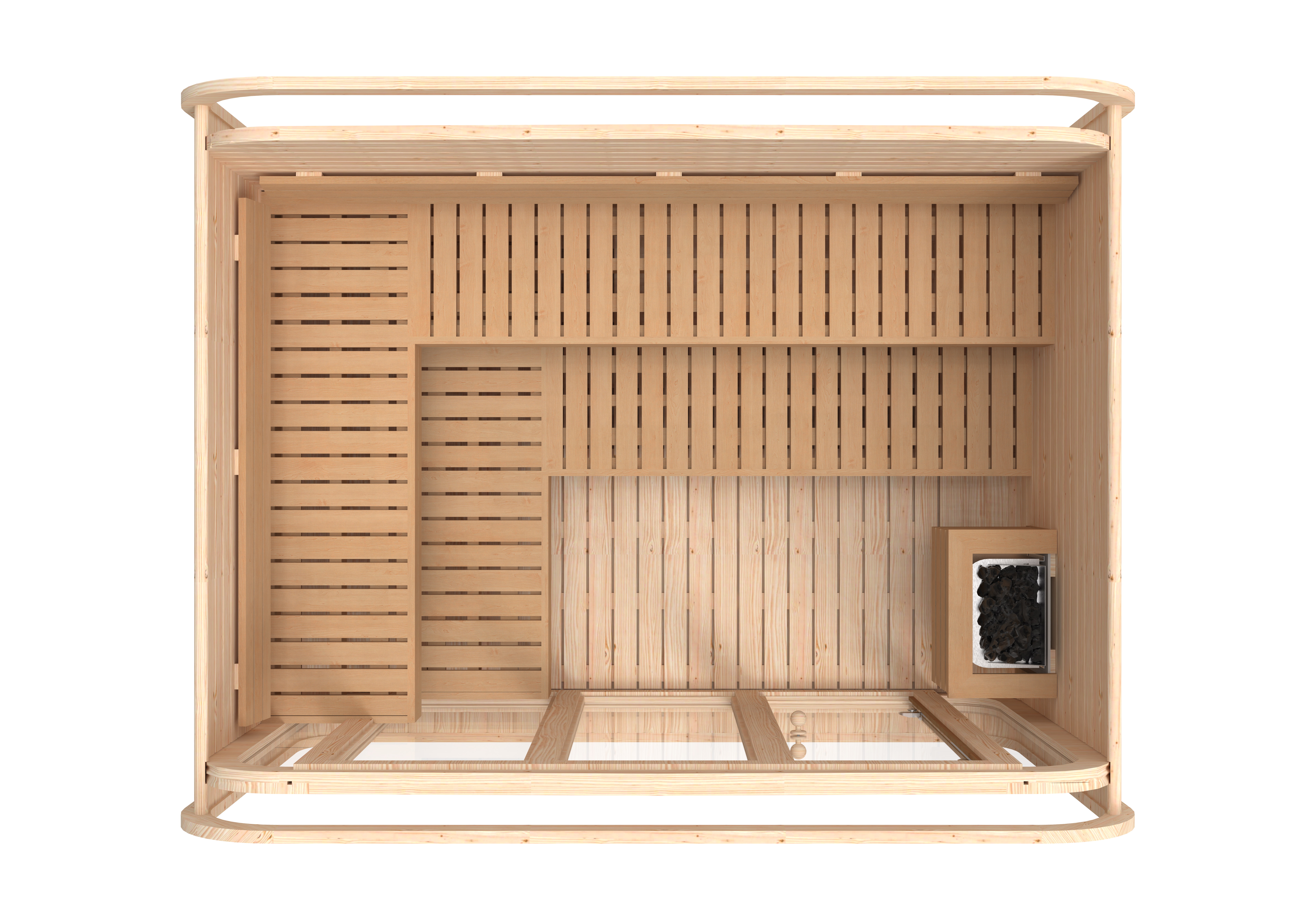 In der Sauna haben Sie genügend Platz, um mit bis zu 6 Personen gleichzeitig zu saunieren.