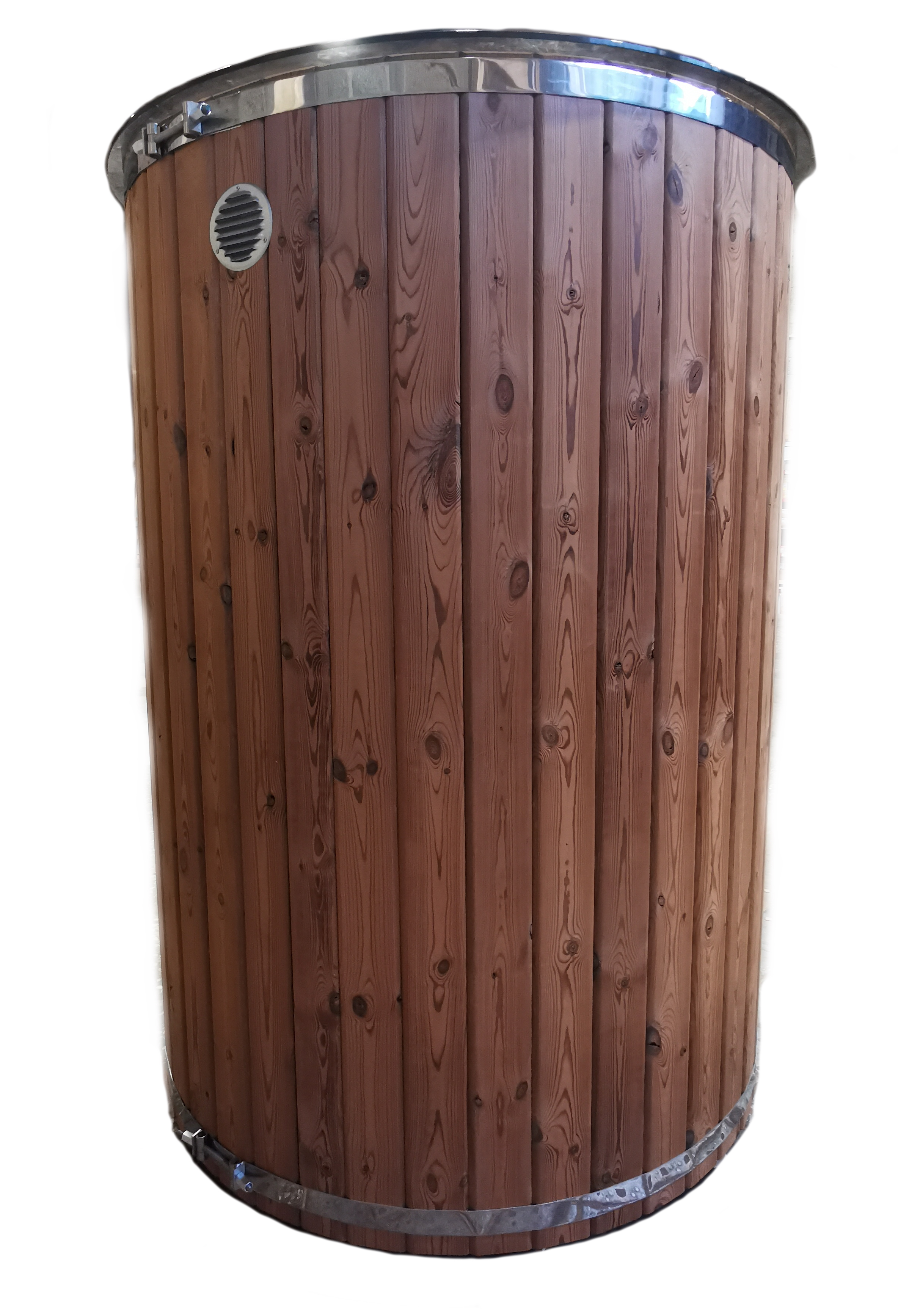 Die vertikale Fasssauna wird ein echter Hingucker in Ihrem Garten! Durch die saubere Verarbeitung aus bestem Thermoholz werden Sie lange Freude haben. Die Sauna hat eine Wandstärke von ca. 46 mm und einen Durchmesser von 148 cm. Die Höhe beträgt 220 cm. Die Sauna ist kreisförmig und hat eine komplette Glastür. Durch die vertikale Form wird die Luft besser zirkuliert, was zu einem noch besseren Saunaerlebnis führt.