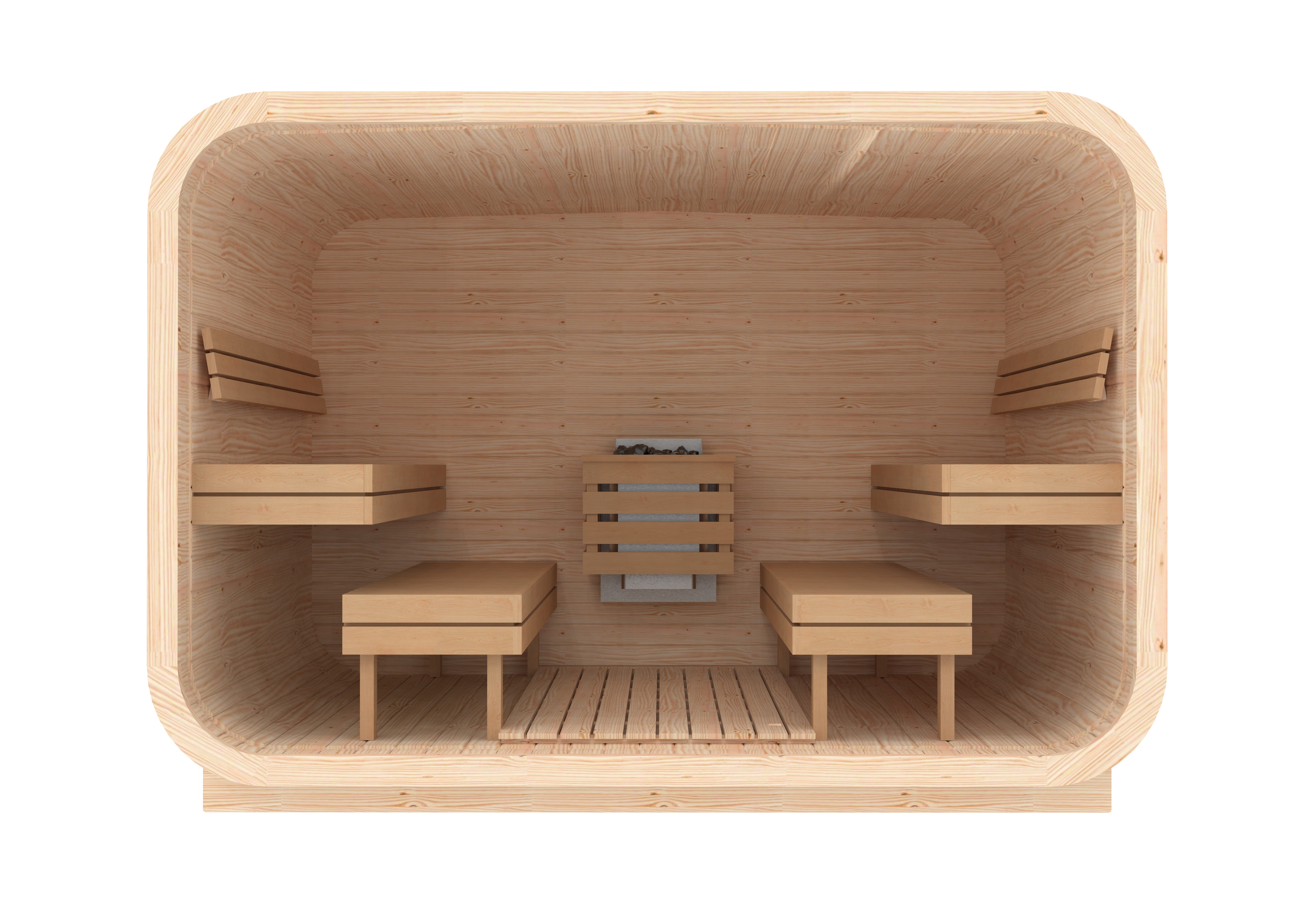 Sie erwerben hier einen Bausatz einer Fasssauna in einer 4-eckigen Form mit einer Länge von 230 cm.