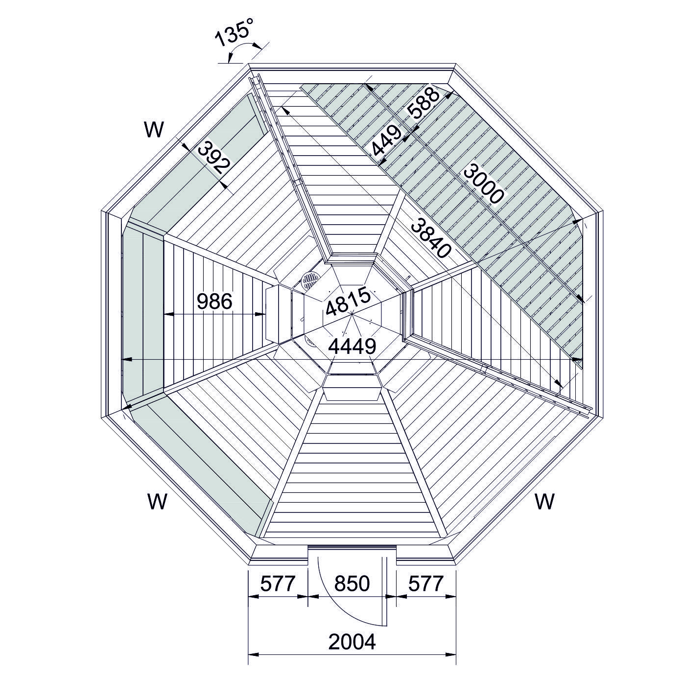 - 8-eckige Grillkota mit einer Gesamthöhe von 400 cm