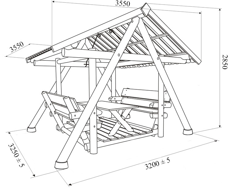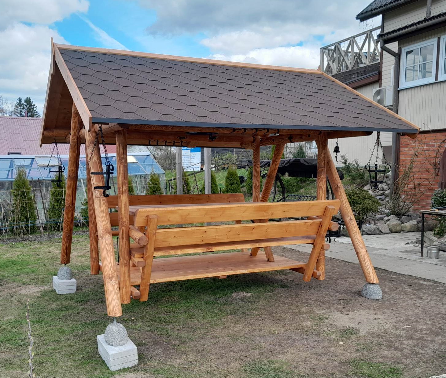 Hinweis: Die Grillschaukel liefern wir standardmäßig mit einem Holzdach inkl. Wasserrillen.